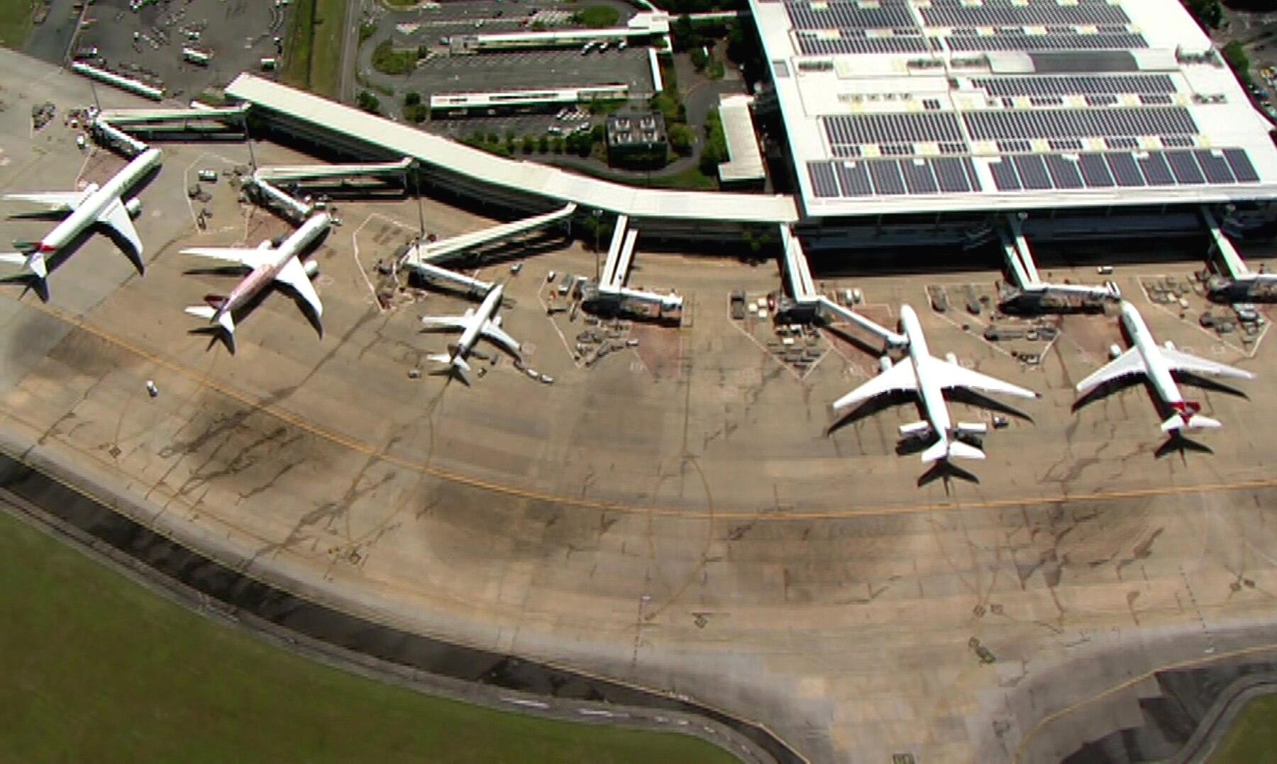 During a supercell thunderstorm near the Brisbane Airport near the port of Brisbane. Brisbane Airport damaged in wild weather. The Brisbane Airport Corporation has told local media including ABC News Australia that they are currently assessing damage but there have been no reports of injuries.
